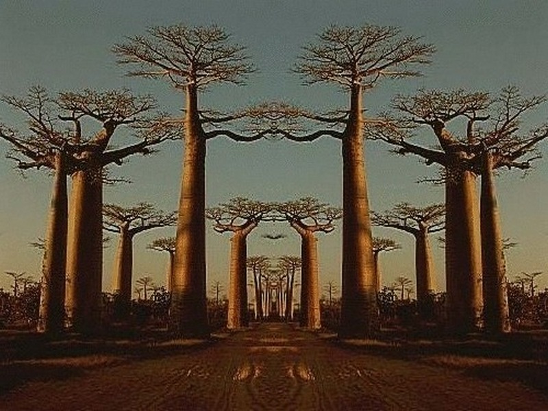 Arriviamo nel Viale dei Baobab, sono esemplari enormi dal fusto liscio e dal colore rossiccio che seguono la pista da entrambi i lati, è uno spettacolo unico, la definizione di viale è appropriata, più avanti prendendo un'altra pista ci sono due particolari baobab unici in Mada, cresciuti avvinghiati fra di loro sono chiamati per questo "innamorati", è certo che nel percorso stradale che va da Tulear a Fort Dauphin in quanto a baobab ne avevamo visti in numero maggiore anche se non così concentrati. Ad ogni modo assieme ai lemuri e a i camaleonti, sono il simbolo del Mada, è giusto passare dal Viale, noi lo abbiamo fatto al tramonto quando i colori del cielo fondendosi con quelli della terra creano uno scenario semplicemente affascinante, molti turisti sono lì immobili con gli sguardi estasiati come ad attendere chissà cosa, dopo il tramonto solo il buio.