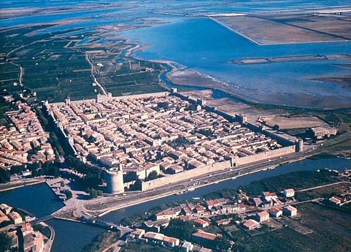 Fù costruita nel 13° secolo da Luigi IX che volevano creare sul Mediterraneo un passaggio verso il Medio Oriente per le sue crociate.